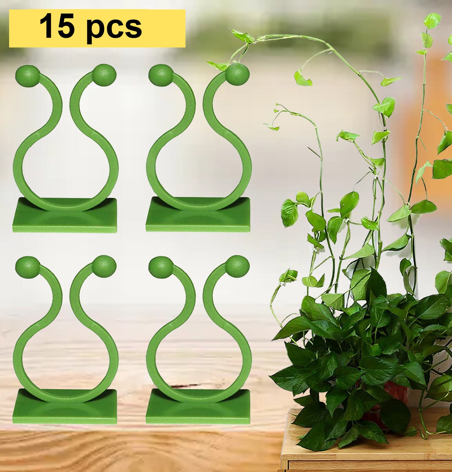 Casa De Amor 15 Pcs Plant Wall Climbing Fixing Clips | Plant Support Garden Clip | Reusable Plastic Plant Support Clips | Self Adhesive Plant Vine Backed Twist Clips (Green)