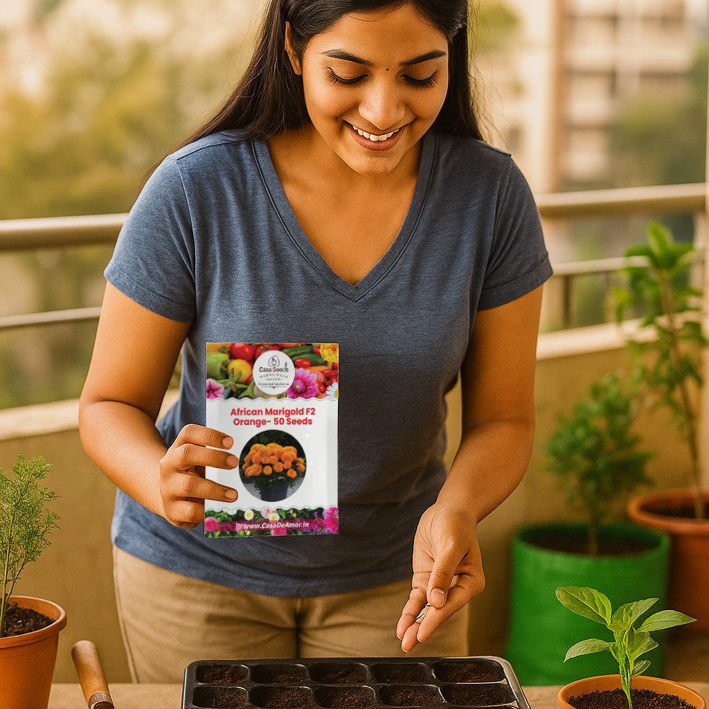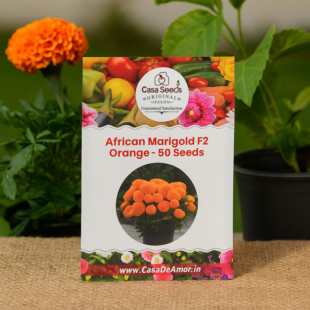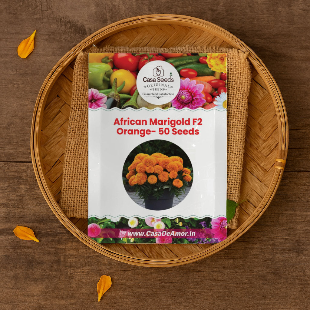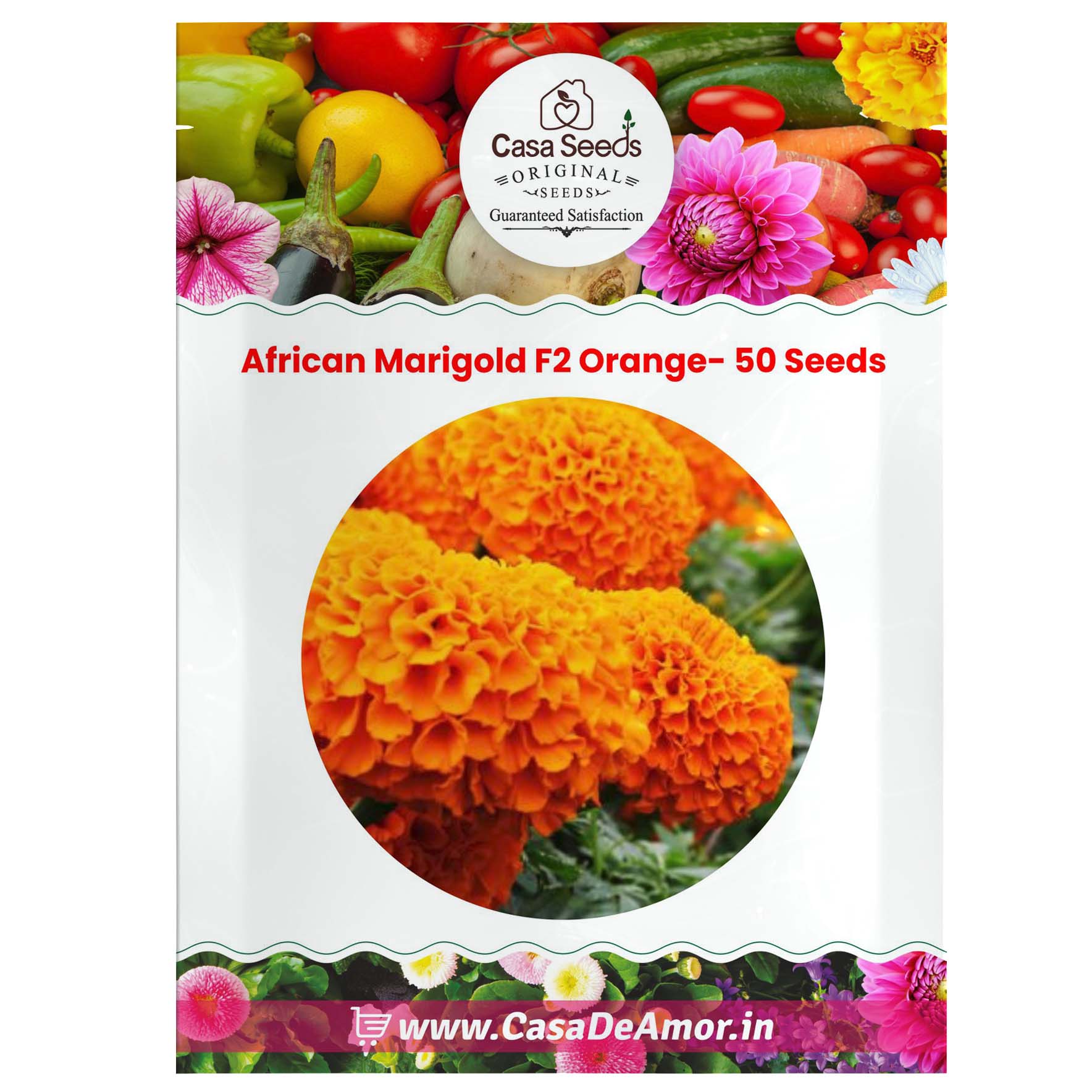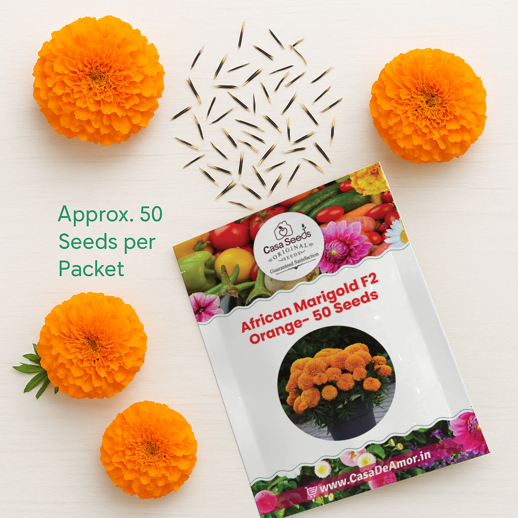 This Marigold is a dwarf plants of 25 cm height with deep orange compact flowers. Best for pots.