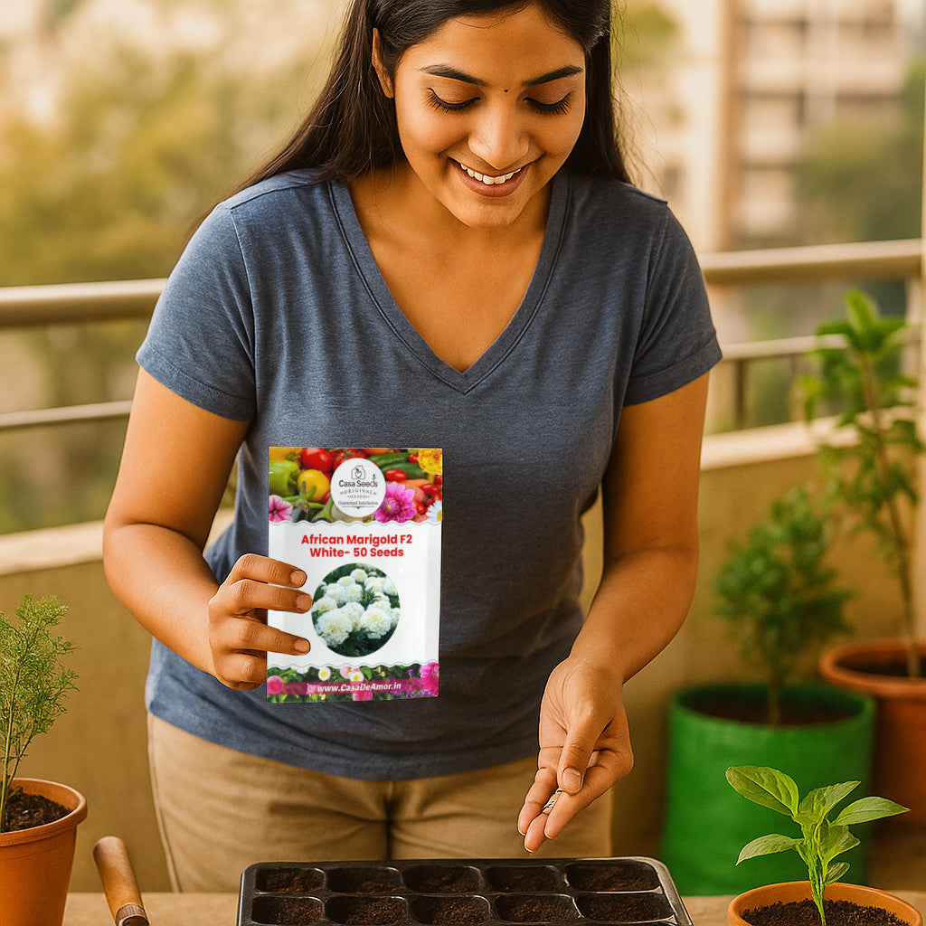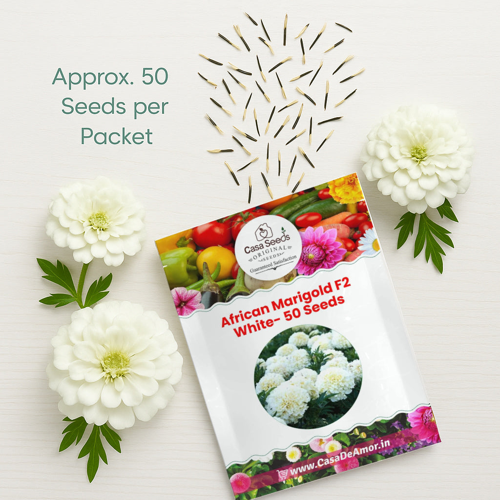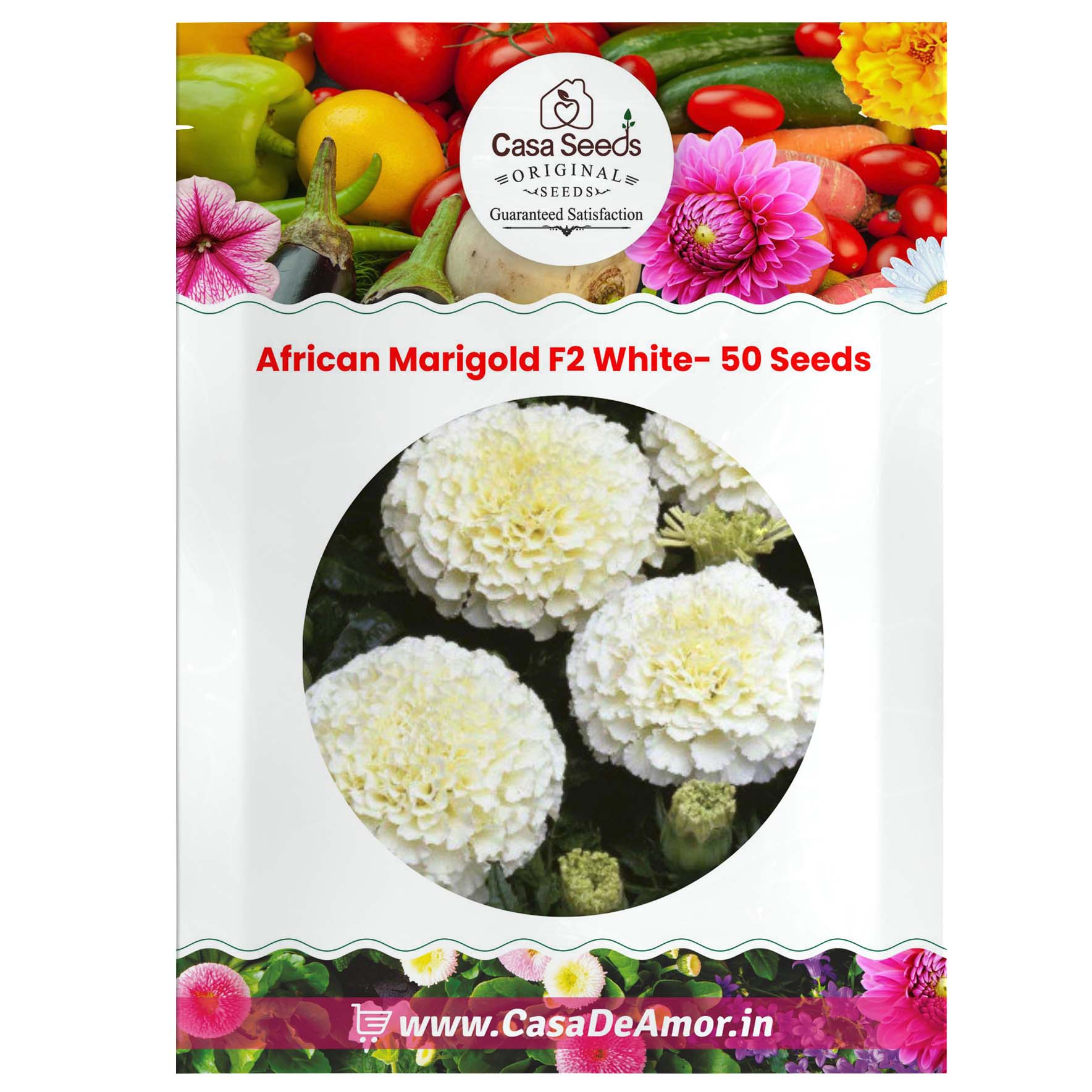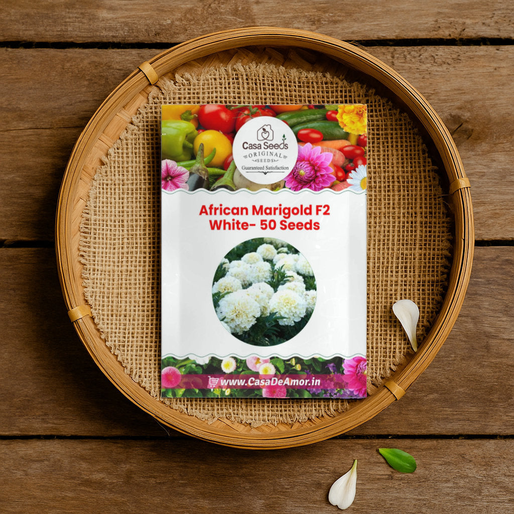 Marigold African F2 White is a Winter season flower, can be sown in mild summers