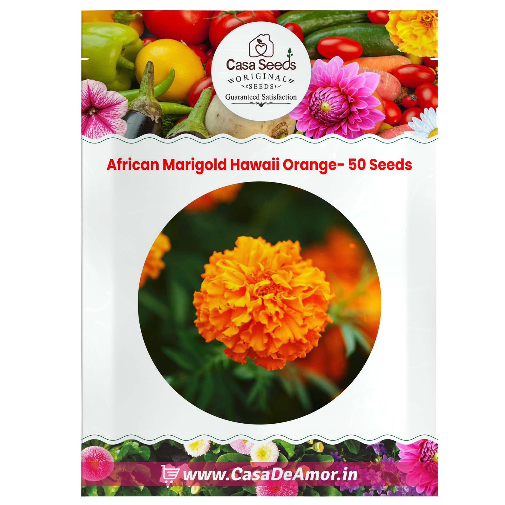 Marigold African Hawaii Orange is a Winter season flower, can be sown in mild summers