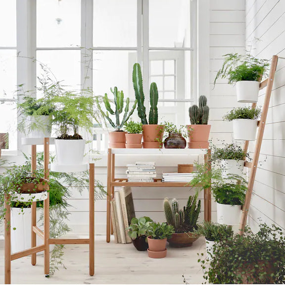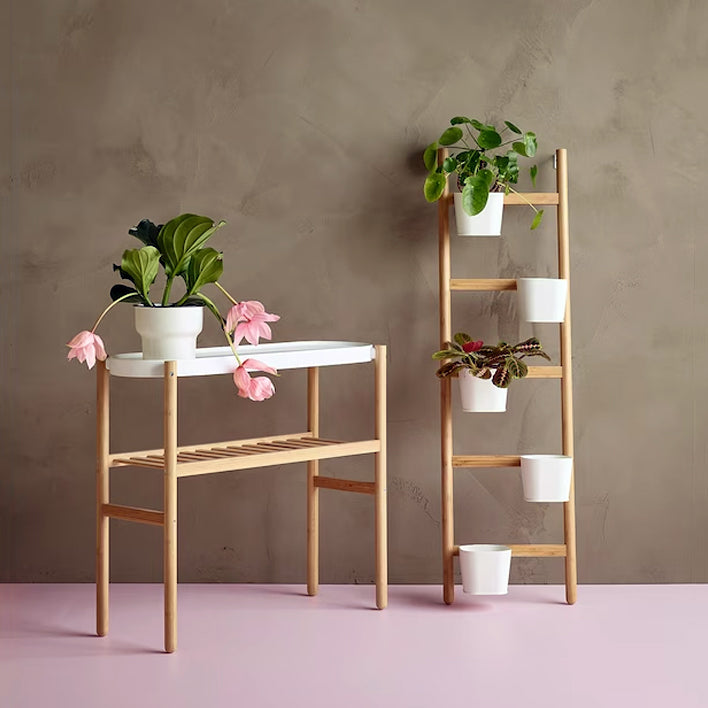 - đłăEnvironmentalăThis indoor plant shelf is made of 100% solid bamboo. And the white carbon steel plate is anti-rust, easy to clean, better bearing capacity.