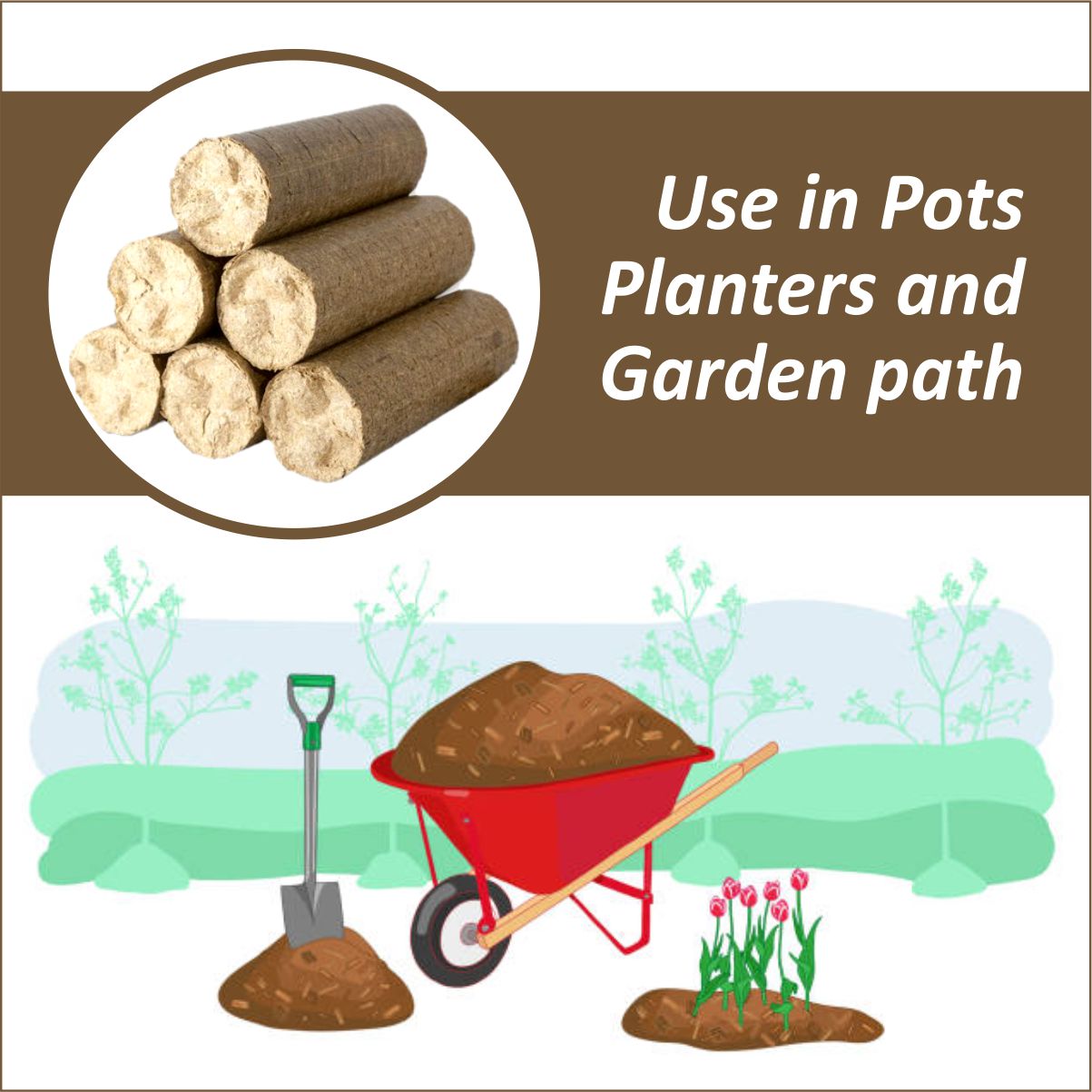 - Use the Biomass Briquettes as a mulch on paths between your garden beds.