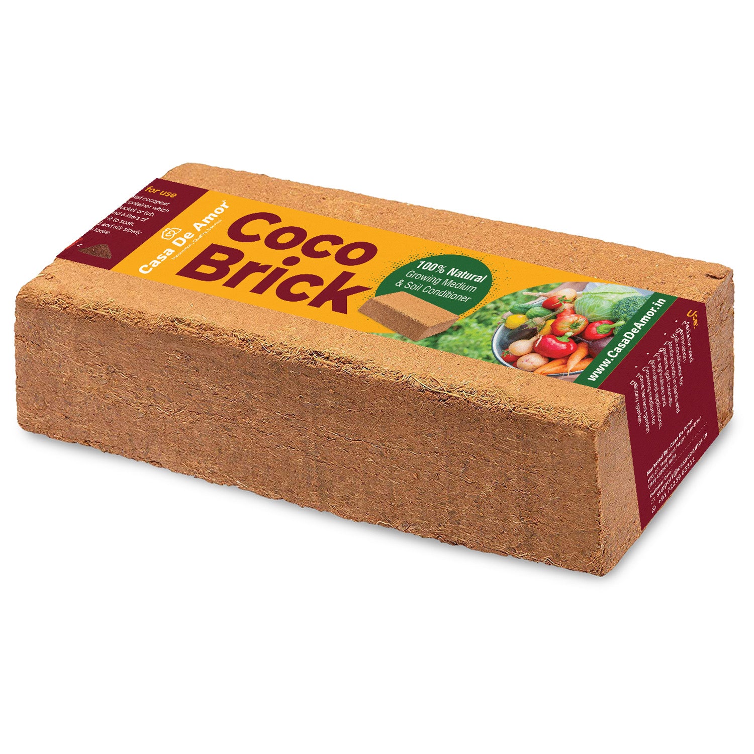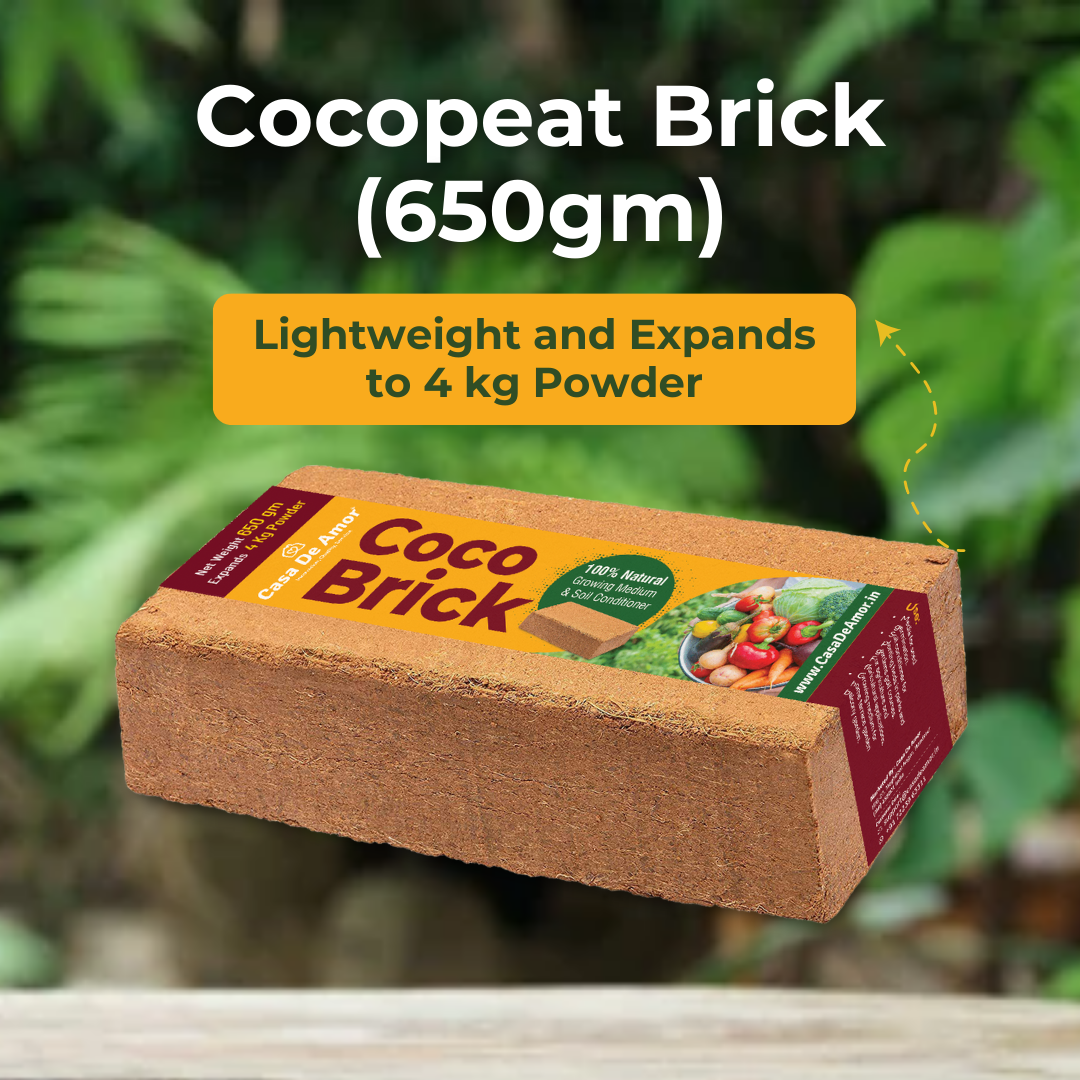 Casa De Amor Cocopeat Brick (650gm) High Water-Holding Capacity, Expands to 4kg Powder
