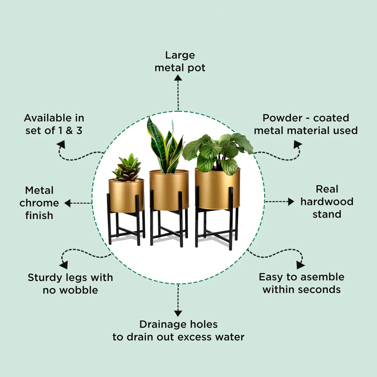 - Foldable fancy stand: The metal planter comes with a foldable stand, which makes it easy to assemble and the planter fits in the stand in one go.