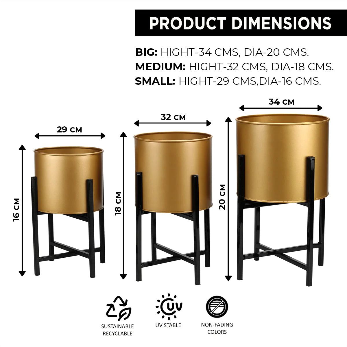 We provide a minimal look in any setting, adding a new look to your living room, bedroom, lobby, doorway or even corners! It is made of high-grade galvanized iron, this indoor pot is rustproof, durable and sturdy, providing good support to the plants. The elegant indoor planter is easy to carry around and place it anywhere in the house. It comes with a foldable stand, which makes it easy to assemble and the planter fits in the stand in one go. This metal planter comes with a drainage hole, which doesn’t let excess water accumulate inside the planter and the soil remains well aerated.