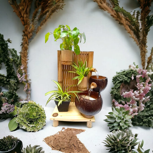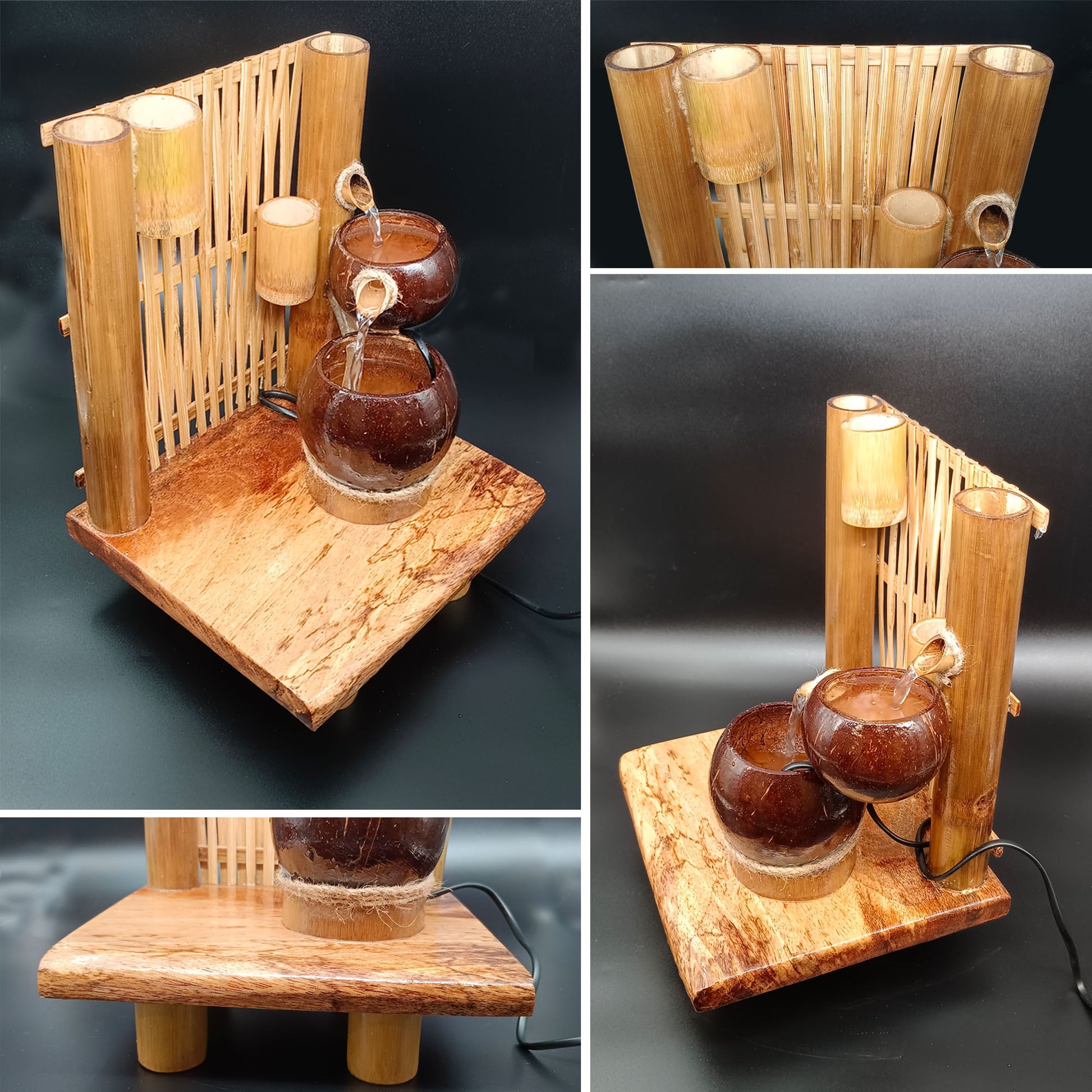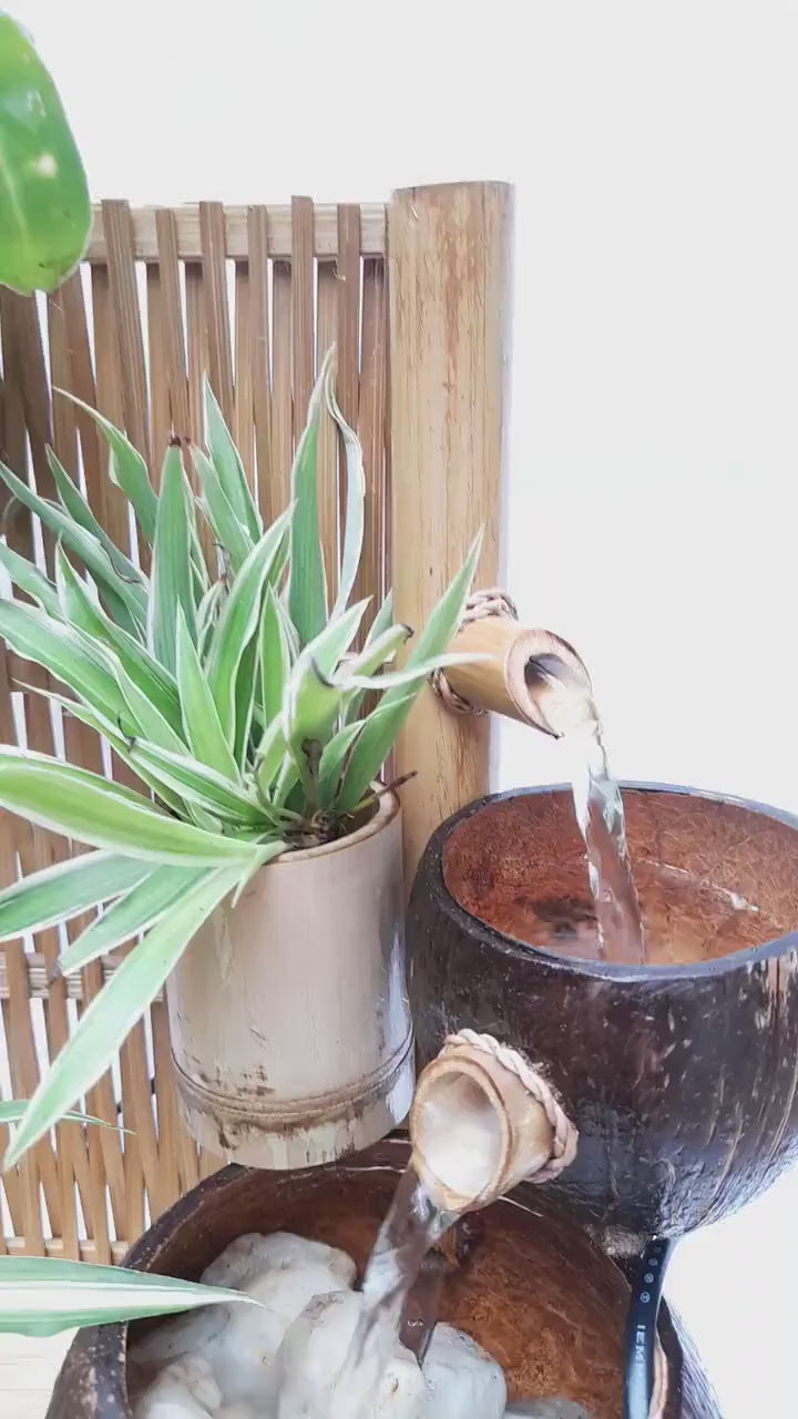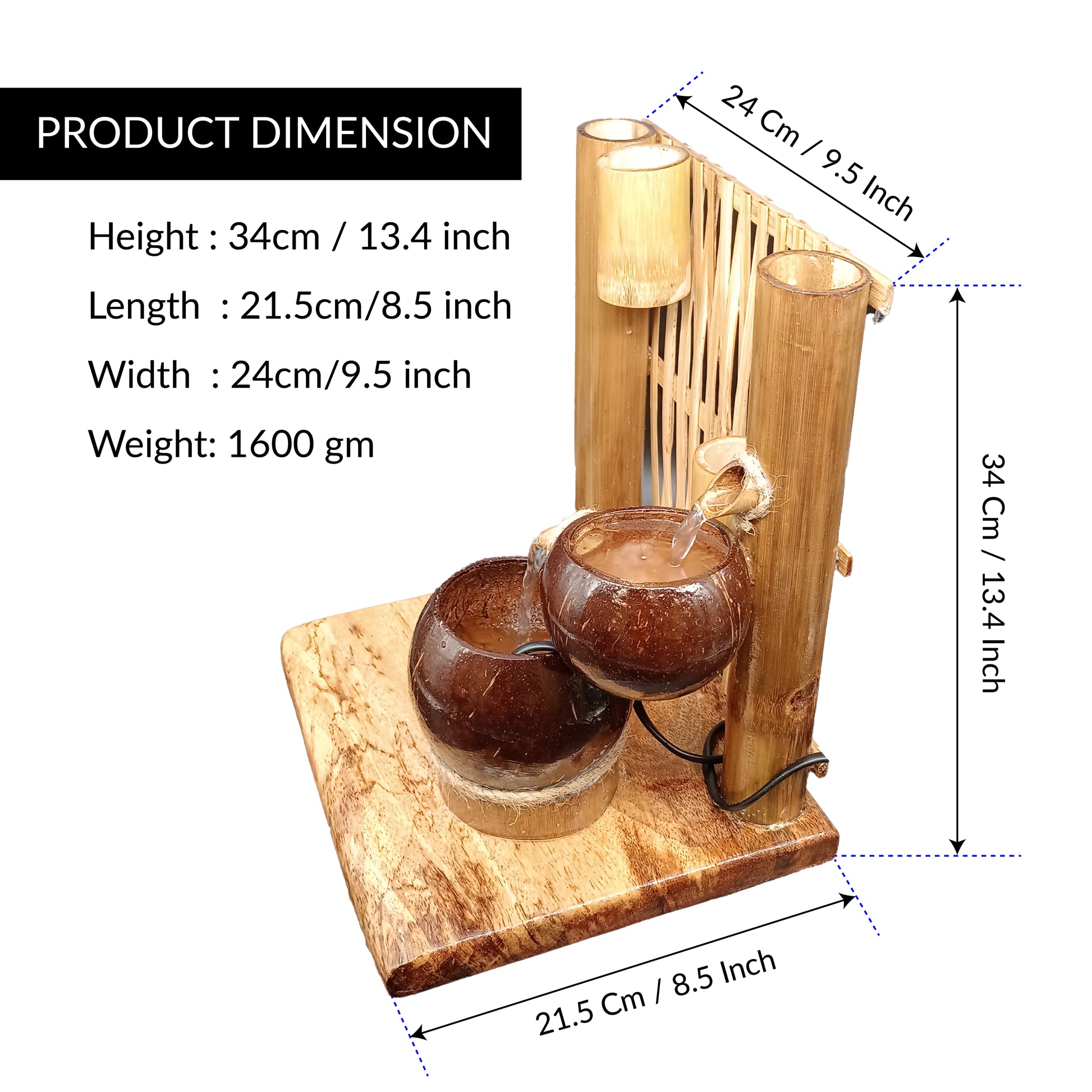 Casa De Amor Coconut Shell Bamboo Fountain for Garden Tabletop Waterfall Indoor Outdoor Living Room Home Decor and Gifts