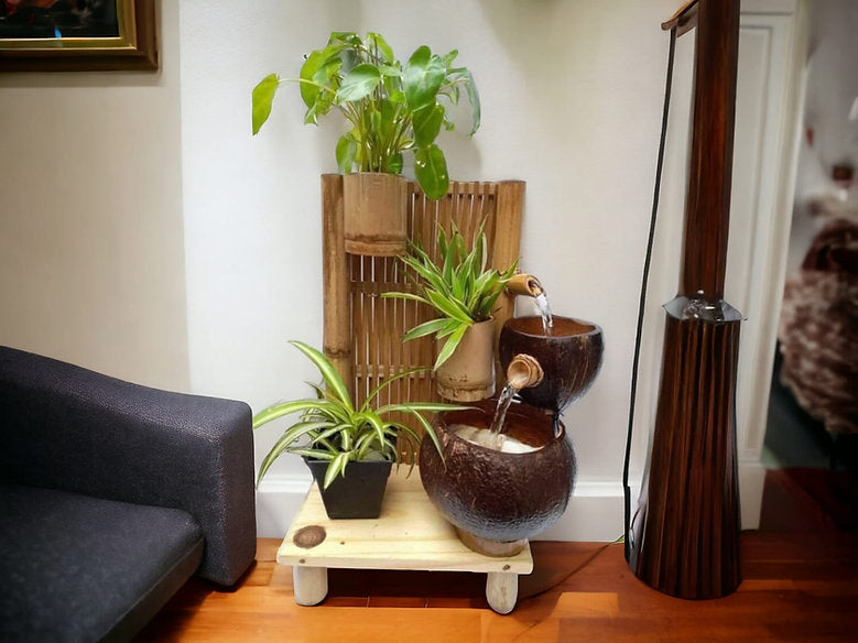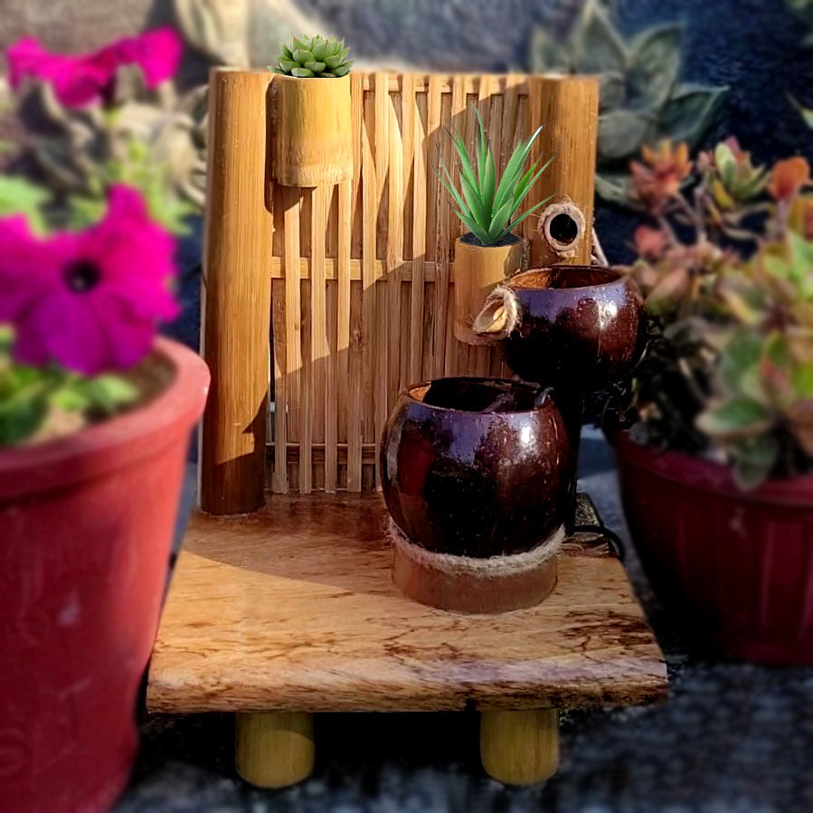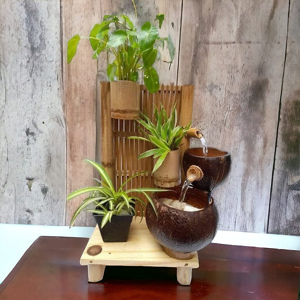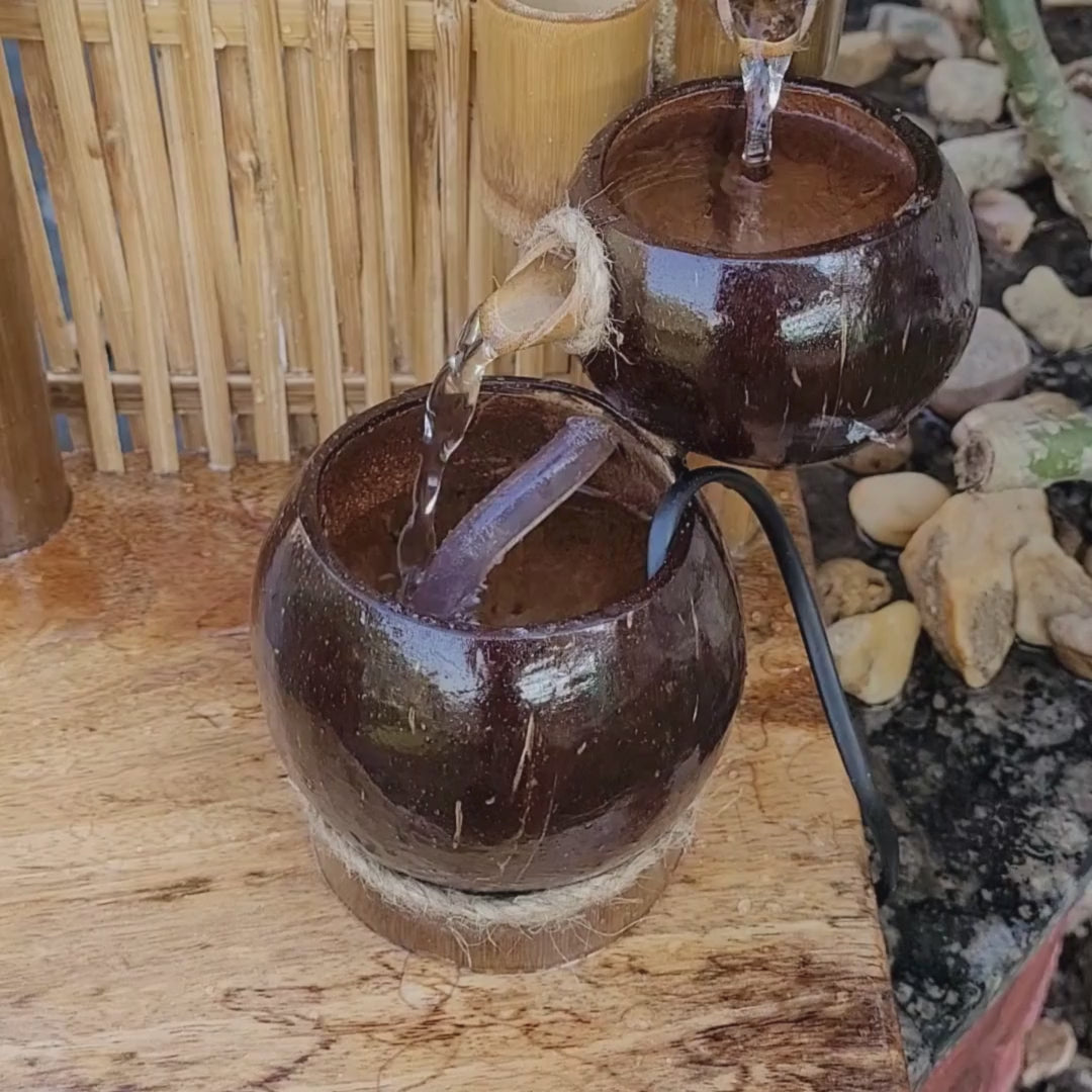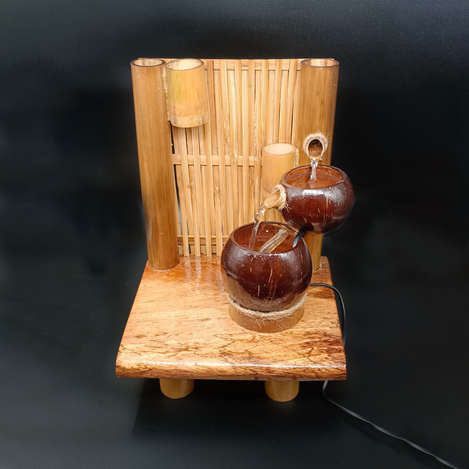 Casa De Amor Coconut Shell Bamboo Fountain for Garden Tabletop Waterfall Indoor Outdoor Living Room Home Decor and Gifts