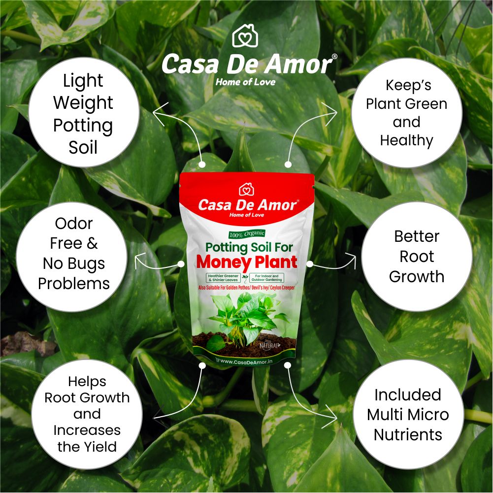 Casa De Amor Enriched Organic Potting Soil Mix for Money Plant, Devil's Ivy, Ceylon Creeper | Light Weight | Ready to Use