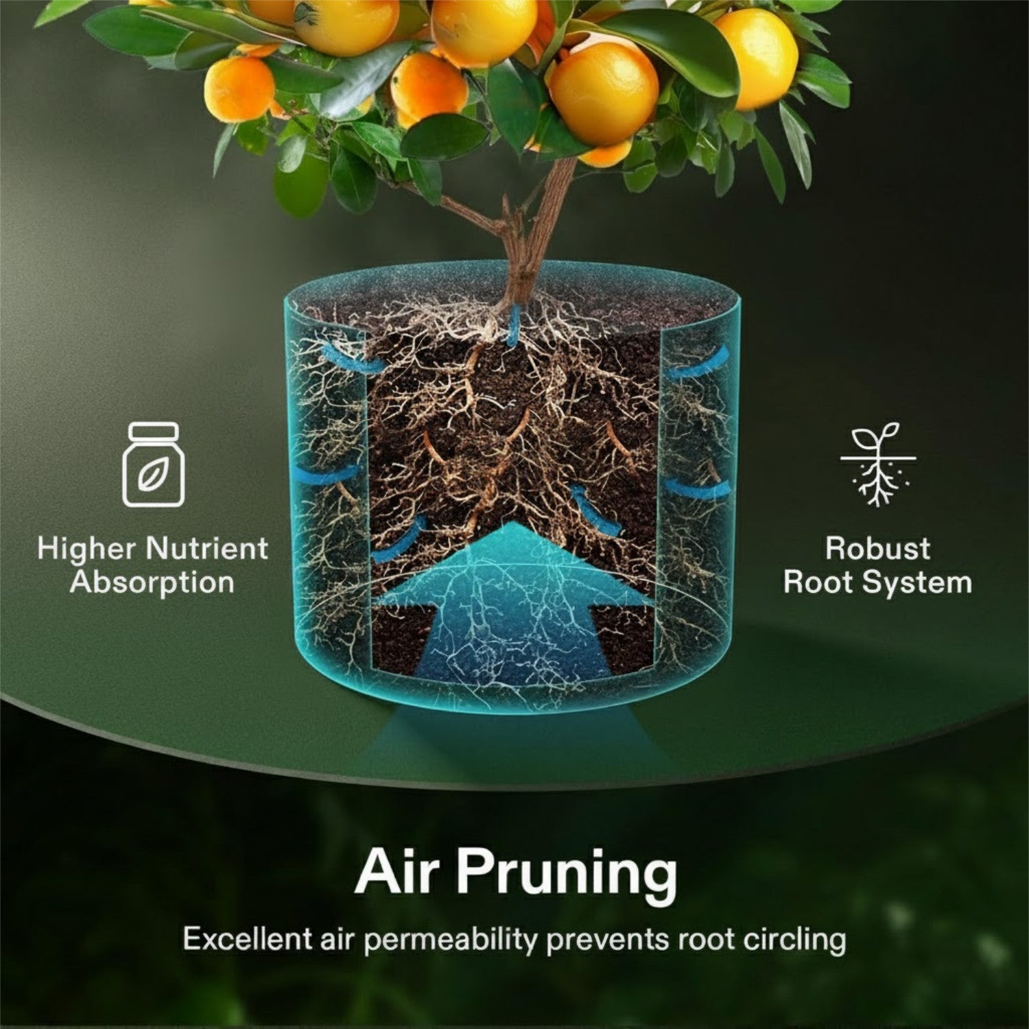 - The automatic air-prune feature ensures roots do not get tangled, allowing for more surface area for water and mineral absorption.