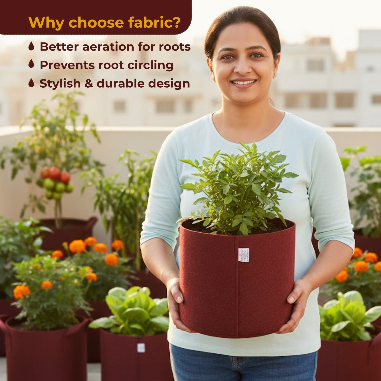 - HEALTHIER PLANT ROOTS: Our fabric gardening grow bags prevent oxygenation or water stagnation or roots circling or stunted growth as the roots come in contact with the edges of the fabric pot plant sense the drier soil that is exposed to the air.