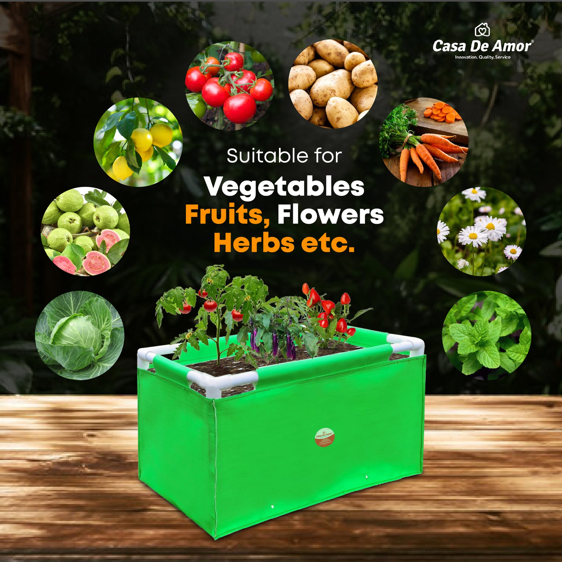 Casa De Amor HDPE UV Protected 260 GSM Green Grow Bags Rectangular Suitable for Vegetable Terrace Gardening (2x1x1 Feet, Pack of 1)
