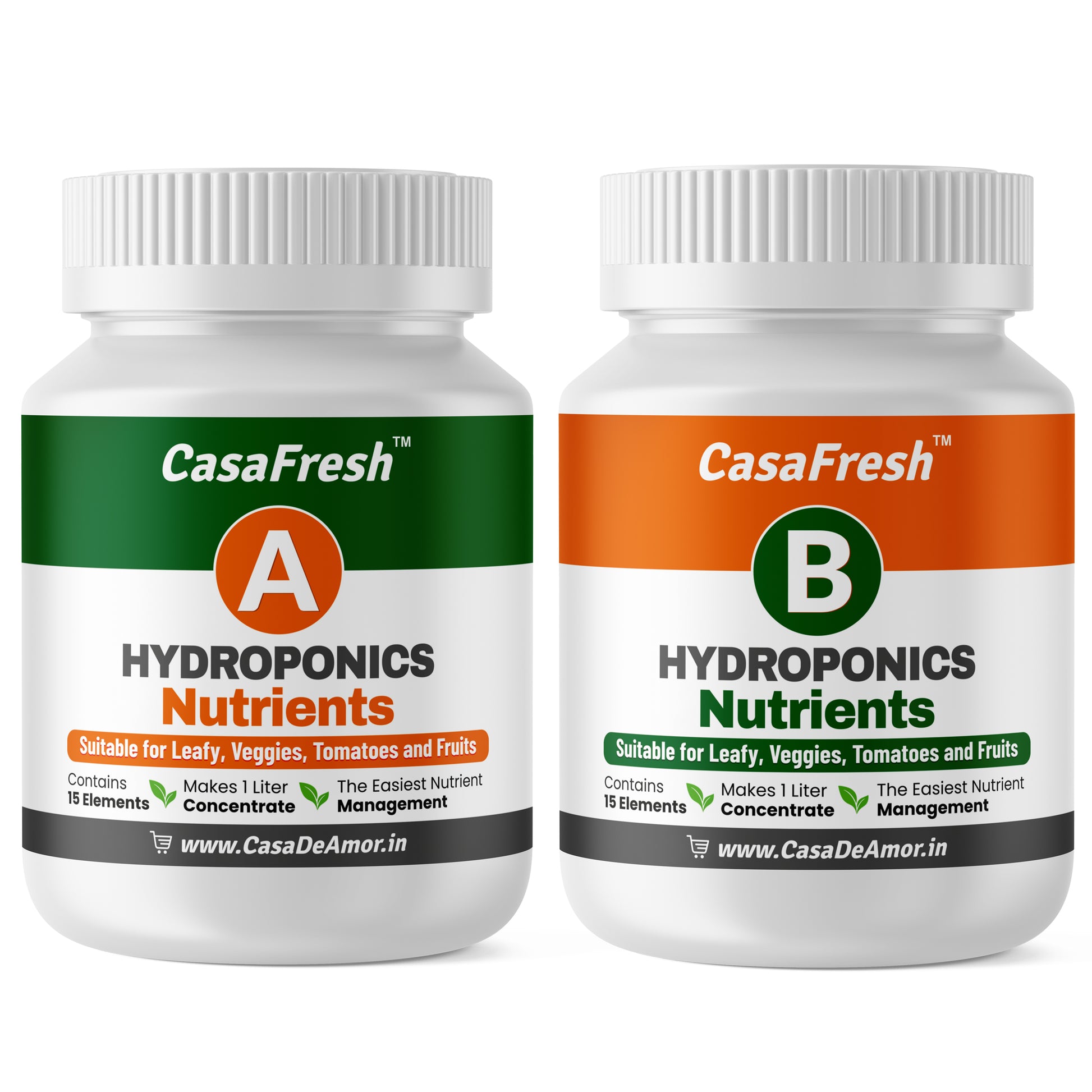 Casa De Amor Hydroponic A&B Nutrients - For Leafy, Veggies, Tomatoes & Fruits, 15 Elements, 200L Solution, Balanced Plant Nutrition