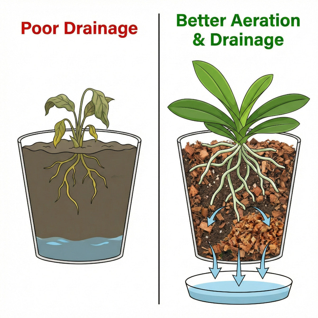 - REDUCE WATERING FREQUENCY - Our bark mulch soil greatly reduces water evaporation and increases moisture retention so tropical houseplants require less watering