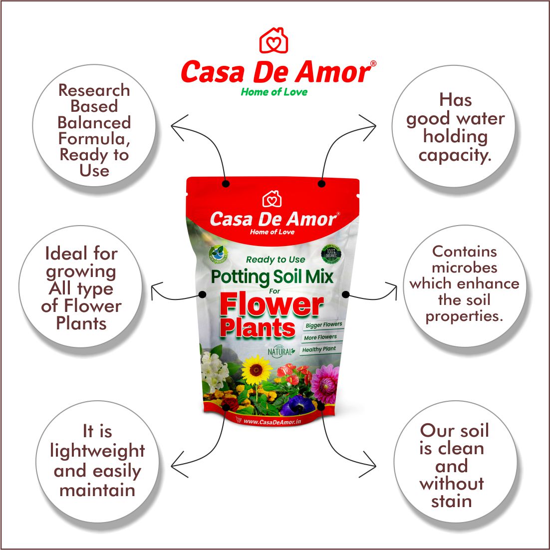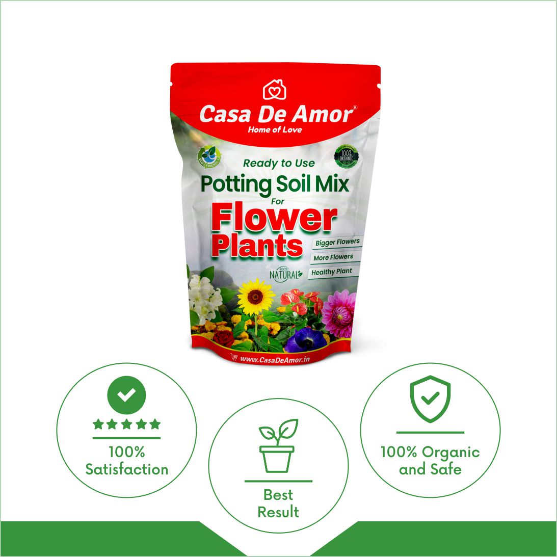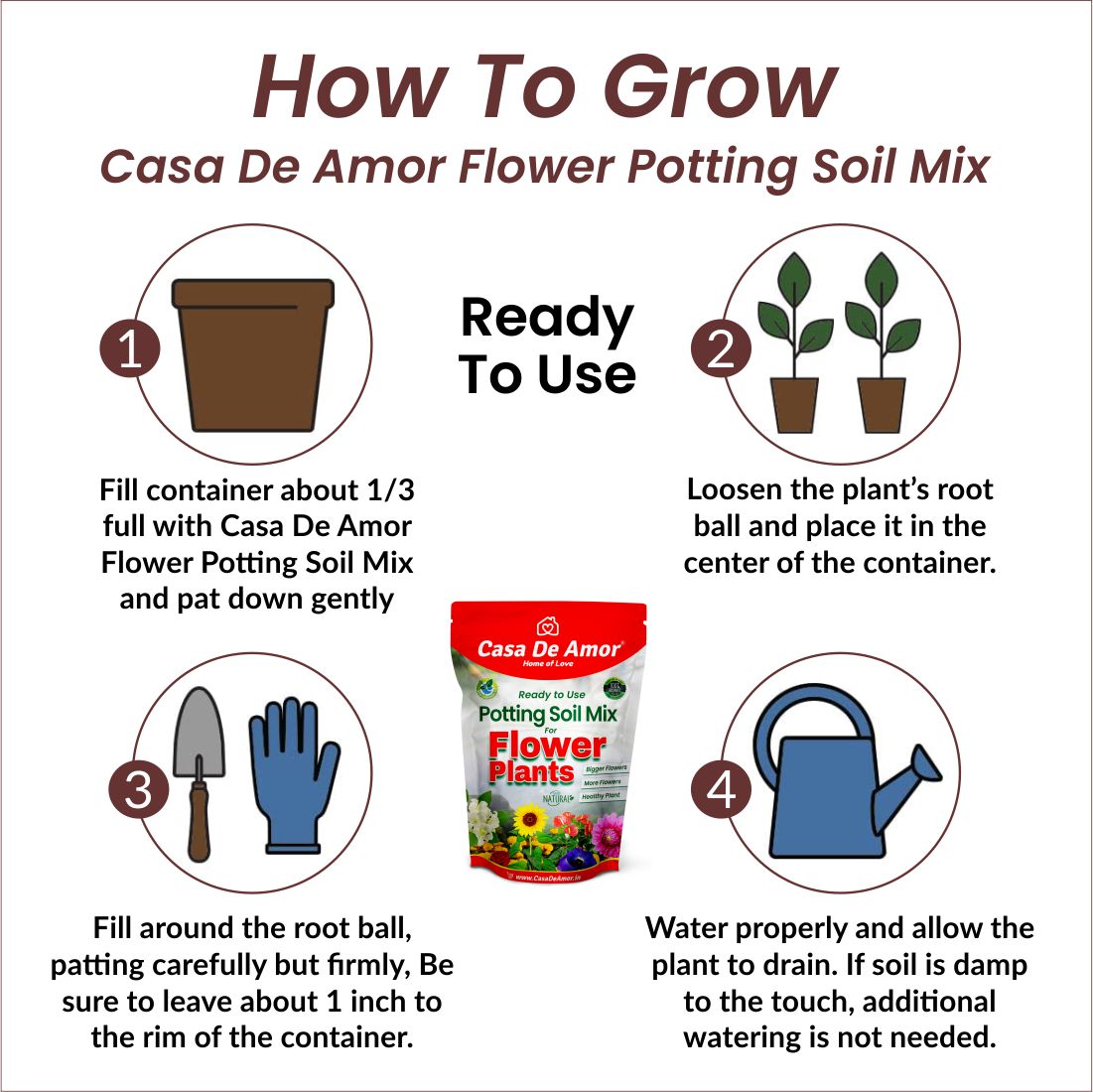 Casa De Amor Organic Flower Potting Soil Mix for Home Garden Flower Plants, Ready to Use