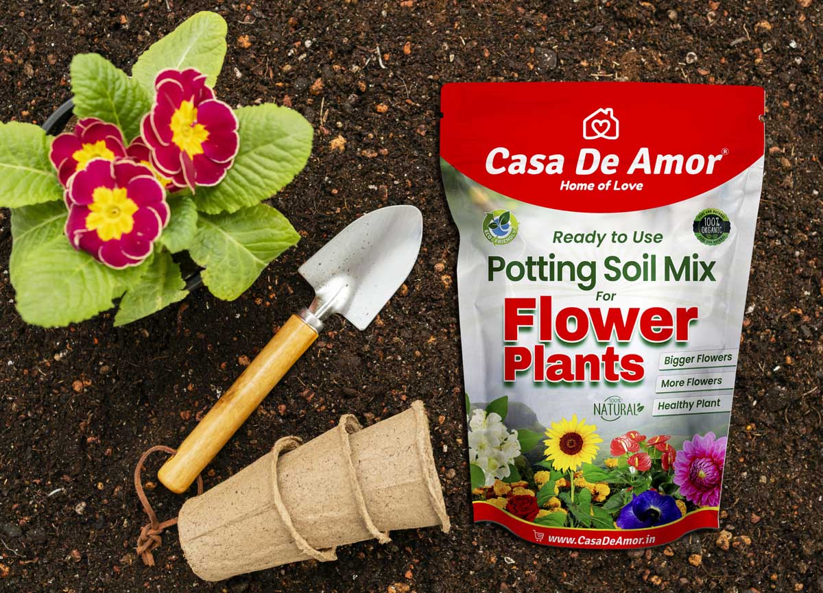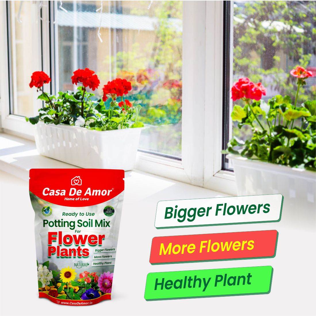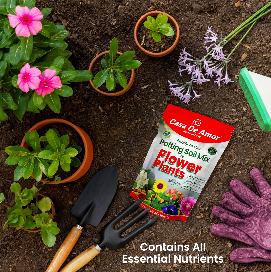 Casa De Amor Organic Flower Potting Soil Mix for Home Garden Flower Plants, Ready to Use