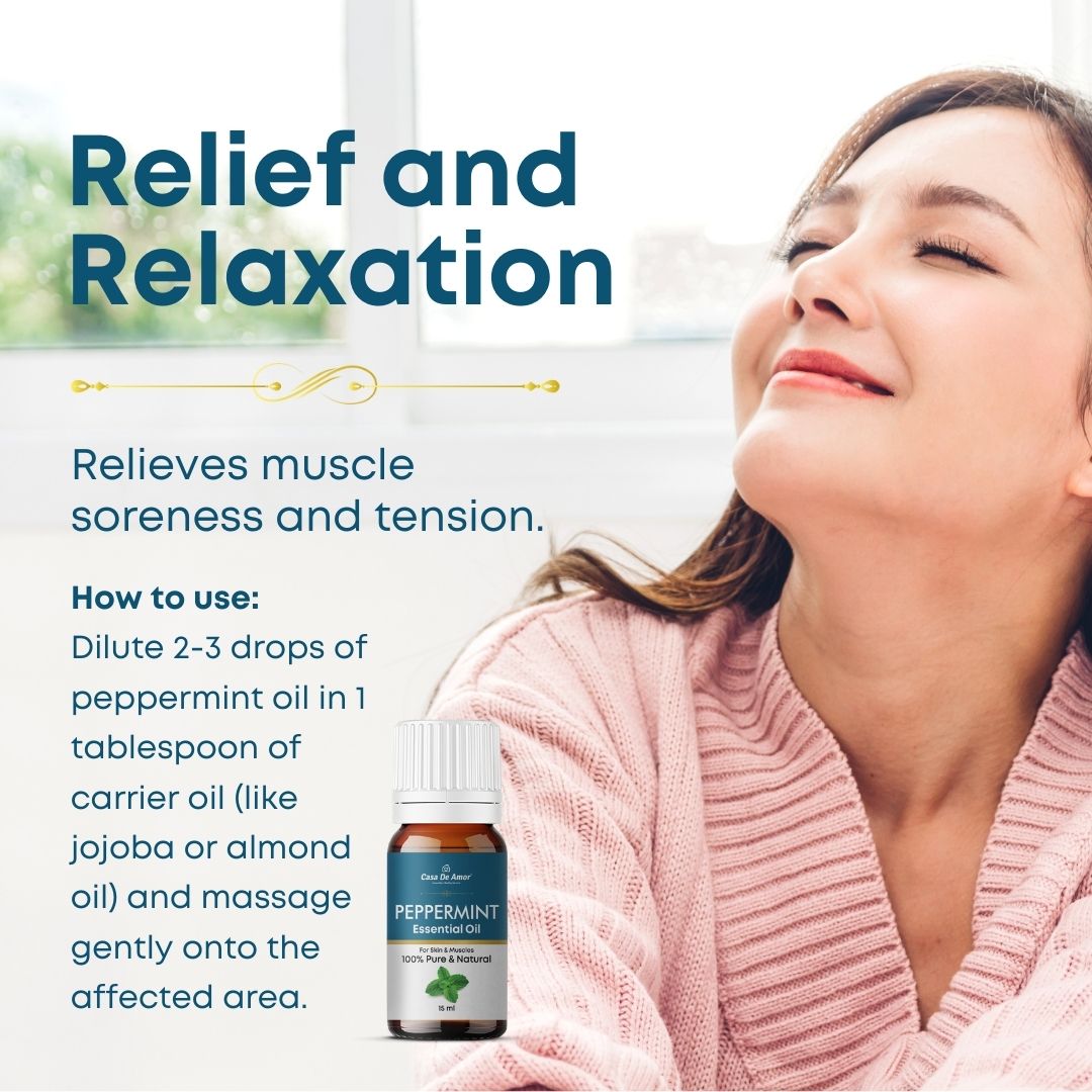 Mix few drops of peppermint oil in a suitable carrier oil & massage thoroughly all over the painful area to let its warmth go deep inside for a relaxing feel.