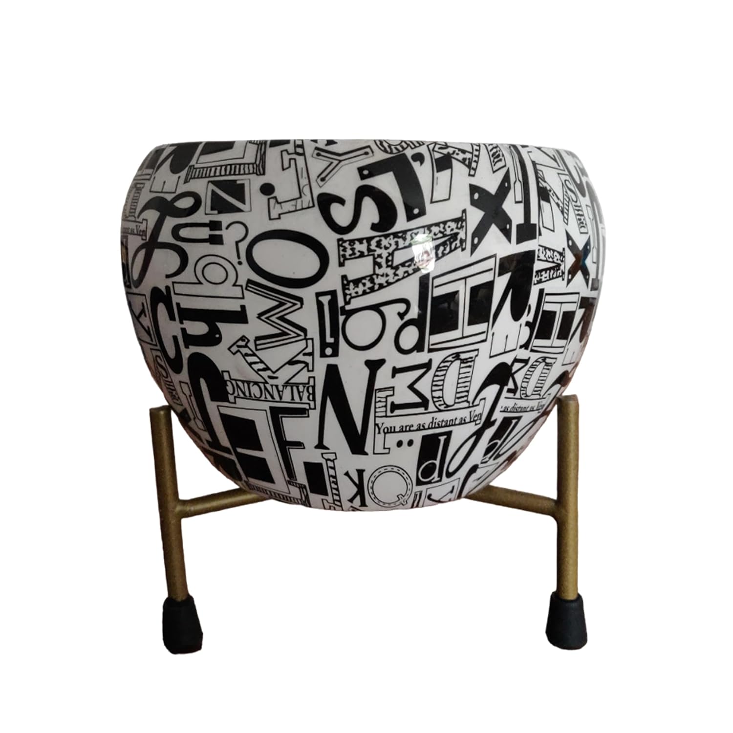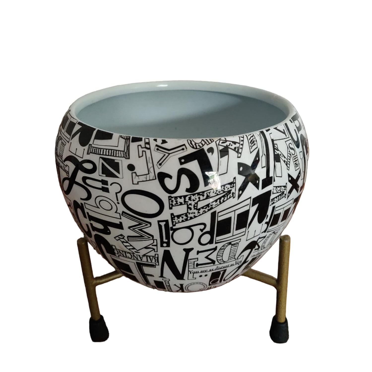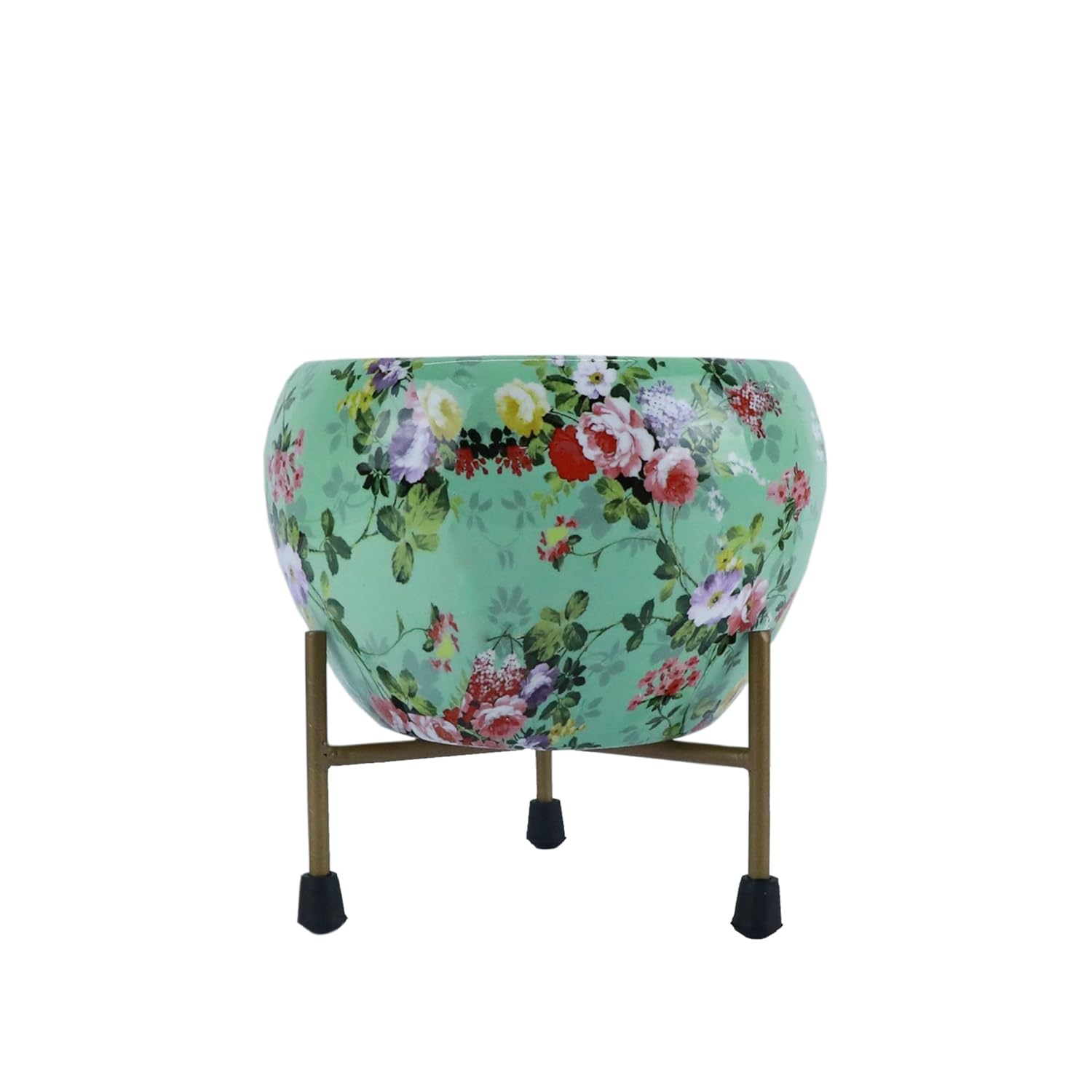 Casa De Amor Printed Planter Flower Pot Container with Iron Stand for Home & Garden Decor (1 Pot & 1 Stand)