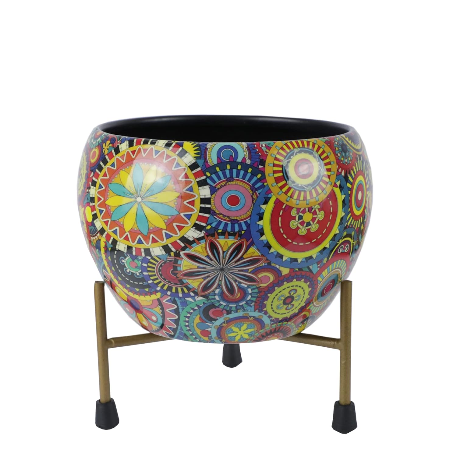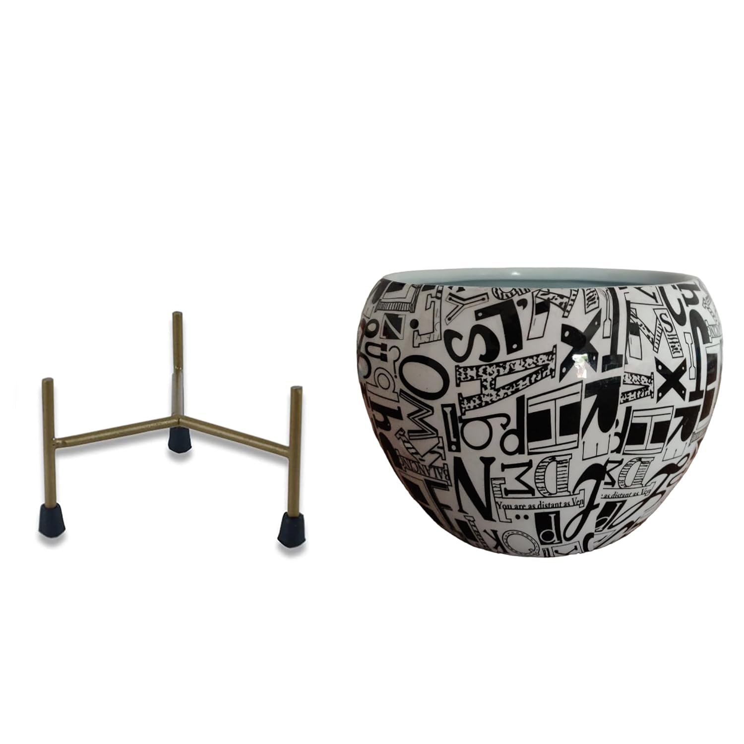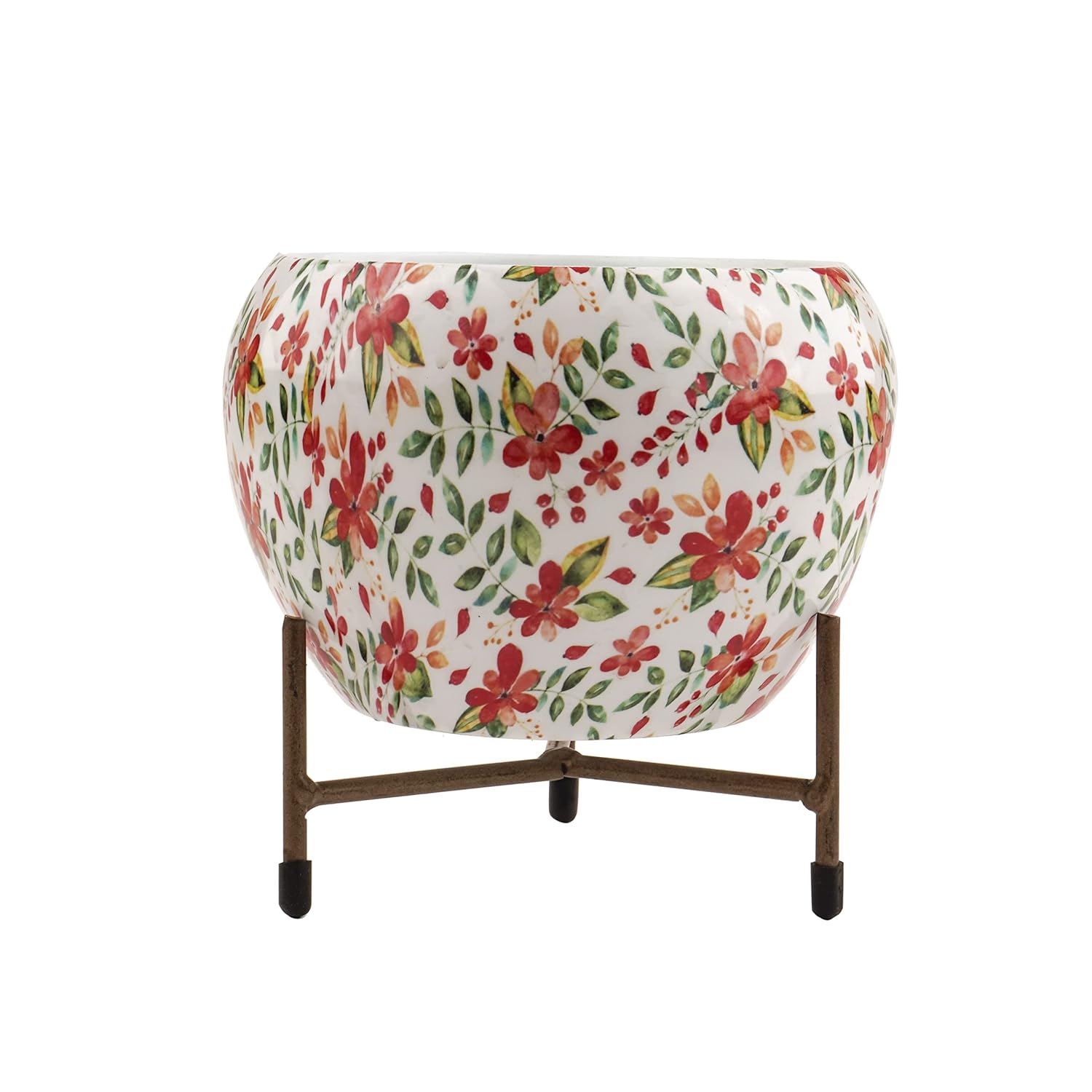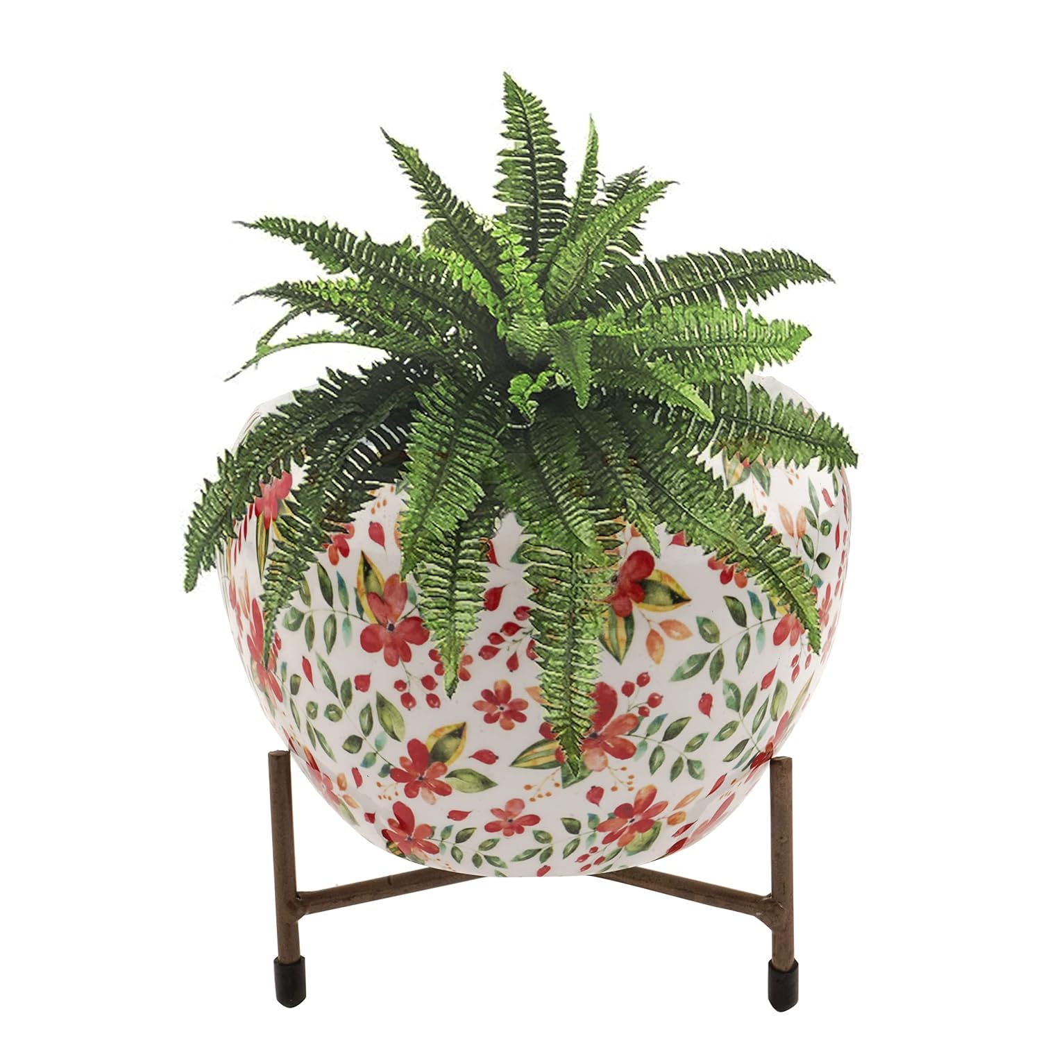 Casa De Amor Printed Planter Flower Pot Container with Iron Stand for Home & Garden Decor (1 Pot & 1 Stand)