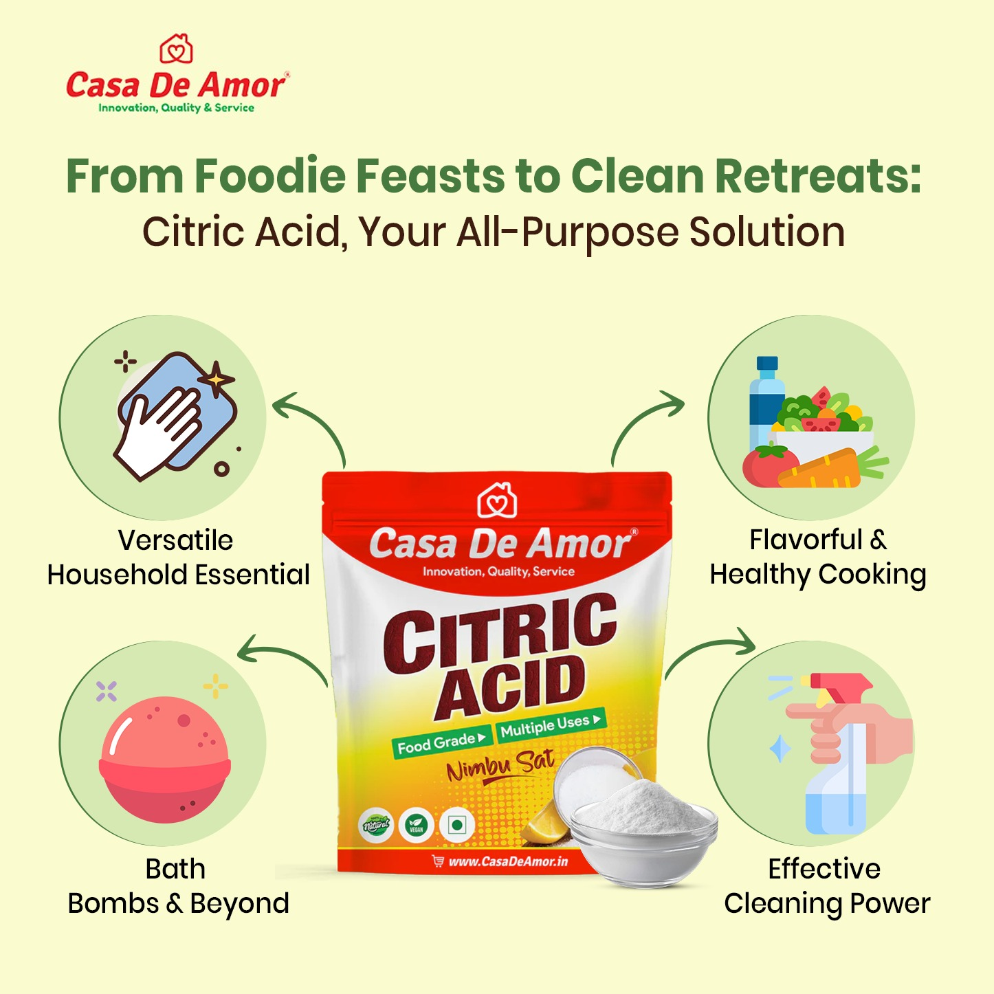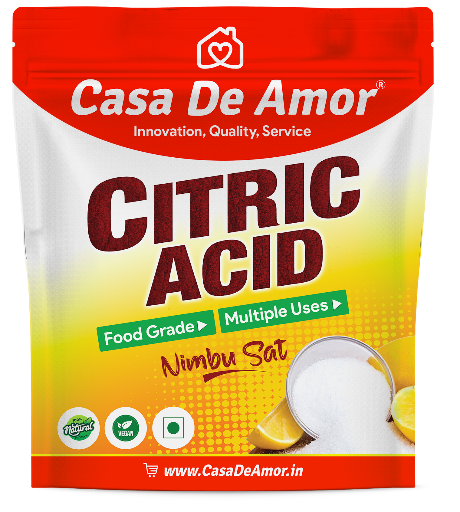 Casa De Amor Pure Citric Acid, Nimbu Sat | Food Grade, Natural Preservative, Cleaning agent