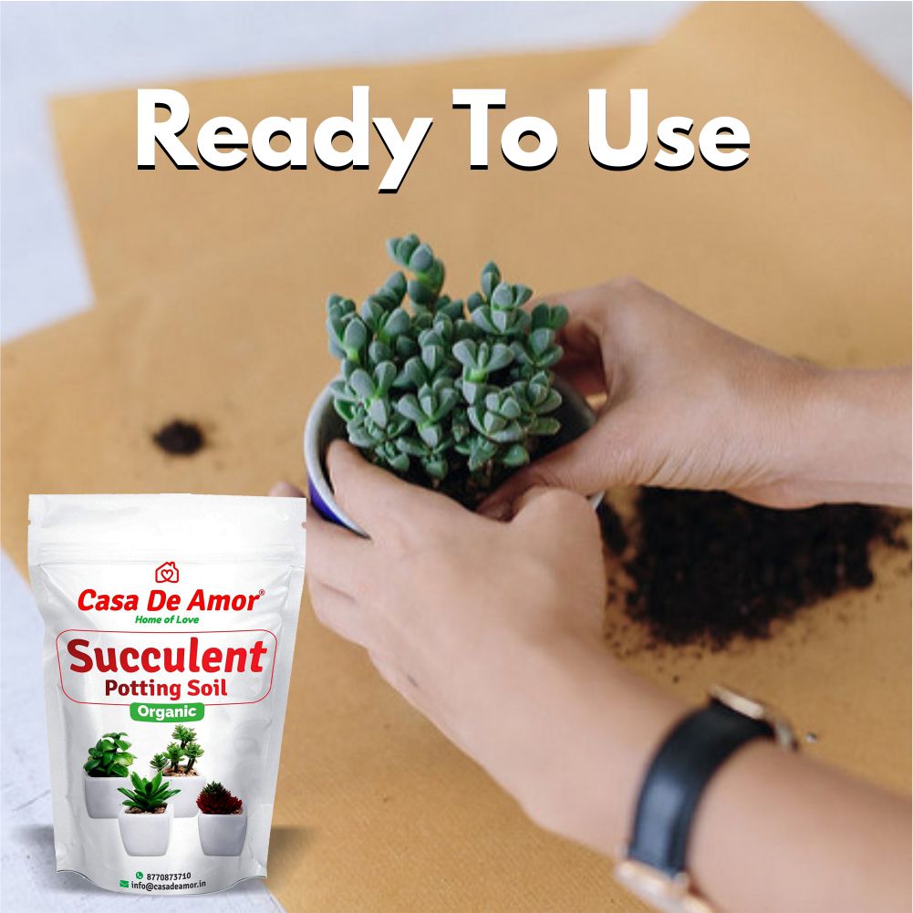 Succulents Potting Soil Organic suitable for succulents such as Burro's Tail (Sedum morganianum), Christmas Cactus (Schlumbergera x buckleyi), Crown of Thorns (Euphorbia milii), Hens-and-Chicks (Sempervivum tectorum or Echeveria elegans), Jade Plant (Crassula ovata), Medicine Plant (Aloe vera), Snake plant (Sansevieria trifasciata) etc.