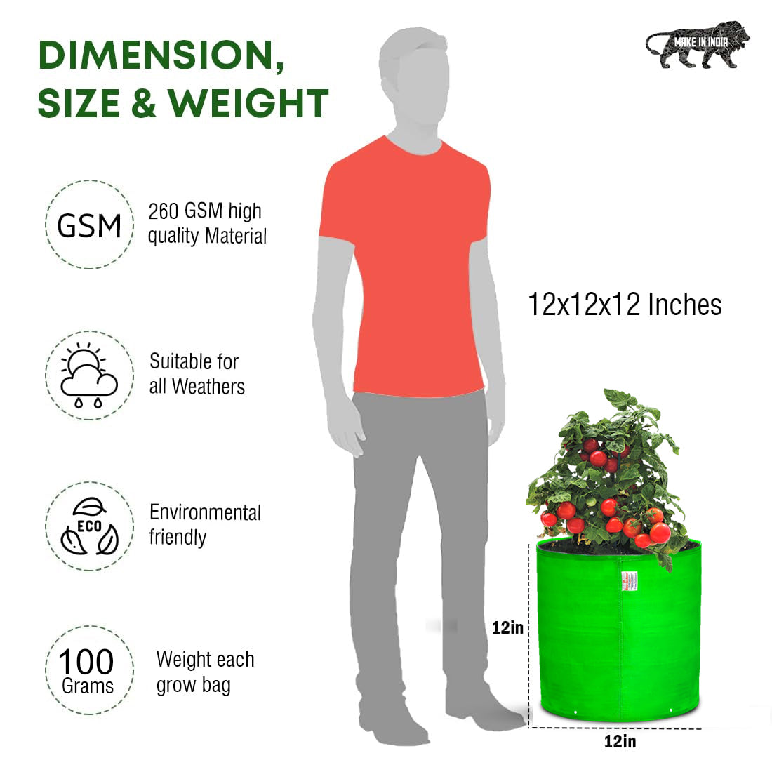Casa De Amor 12X12 Inch HDPE Green Grow Bag Terrace Gardening Vegetable and Flower (260 GSM)