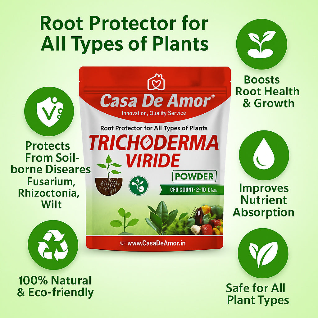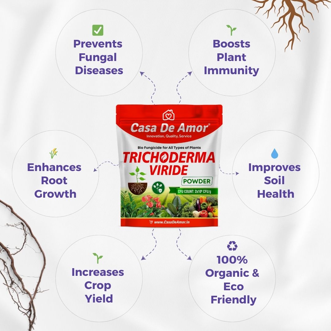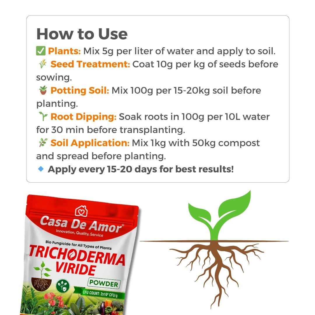 Casa De Amor Trichoderma Bio Fungicide for Plants | Protects from Fungal & Bacterial Diseases | Boosts Plant Immunity & Root Growth (2 x 10⁸ CFU per Gram)