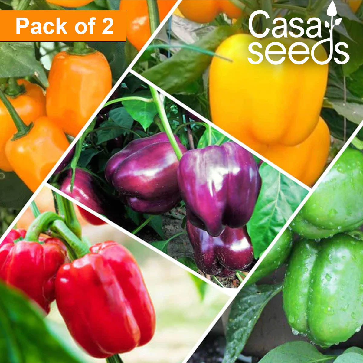 Casa De Amor Capsicum Seeds (Green, Yellow, Red, Orange & Purple Vegetable Seeds) for Home and Terrace Gardening (Each 30 Seeds, Total 150 Seeds)
