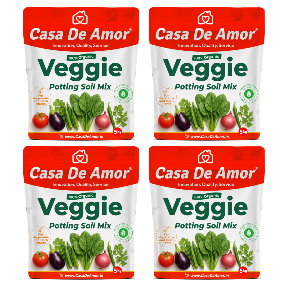 Casa De Amor Essential Veggie Potting Soil is a premium, ready-to-use, 100% organic growing medium specially designed for home gardeners. Ideal for growing a wide range of vegetables and herbs like tomatoes, spinach, coriander, mint, chillies, and more, this mix is perfect for kitchen gardens, terrace gardens, and balcony planters. It contains a well-balanced combination of organic compost, coir peat, and essential nutrients that support strong root development and enhance plant immunity. The result? Fresher, tastier, and more nutritious home-grown vegetables. With excellent water retention and aeration, this potting mix helps plants thrive naturally—no synthetic fertilizers needed.