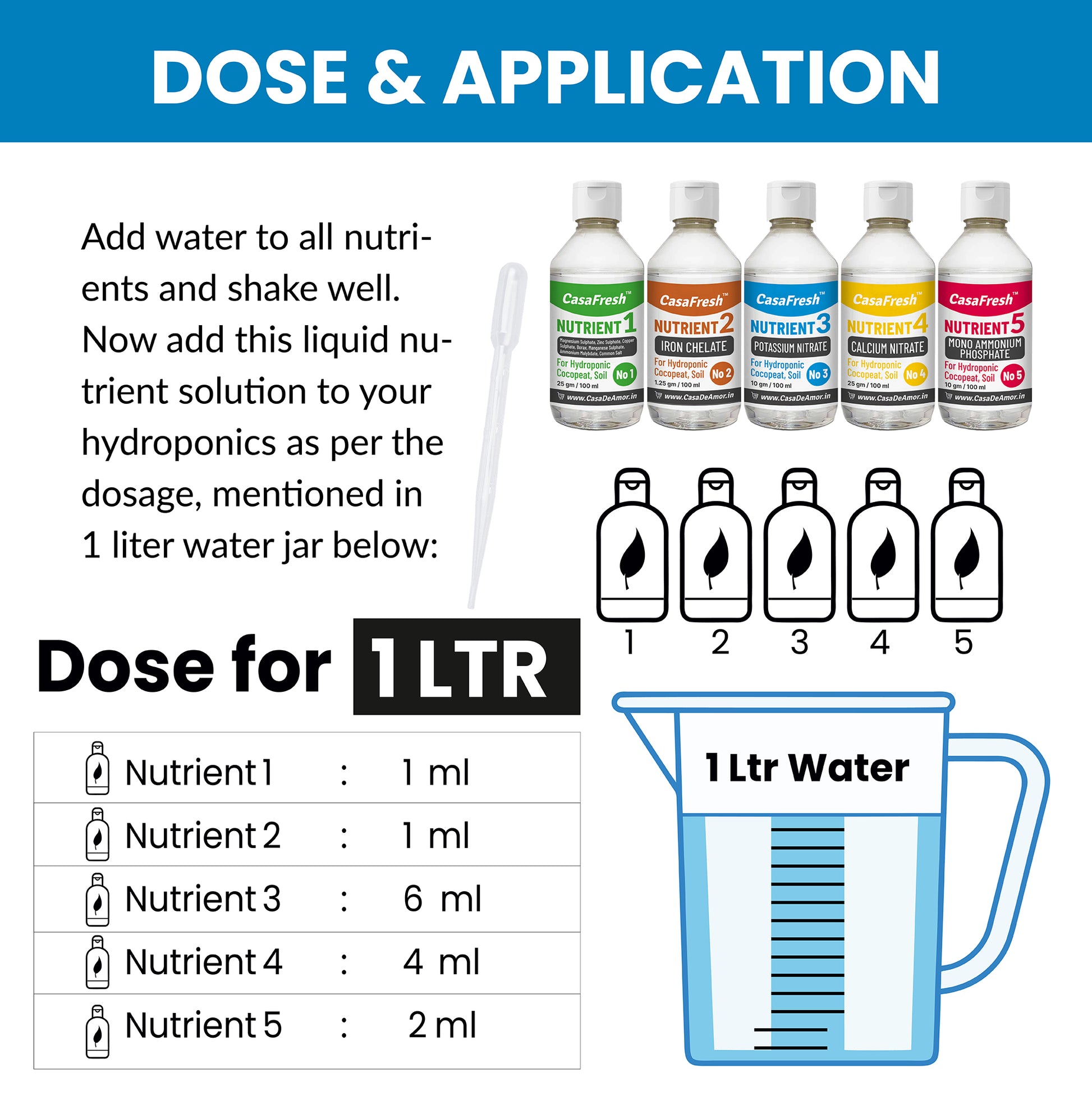 CasaFresh Hydroponic Nutrients 5 Part (Powder Form - 100 ML individual nutrient solution that converts to a 100 Litre Balanced Nutrient) - Complete Plant Nutrition for Leafy Greens and Fruiting Plants