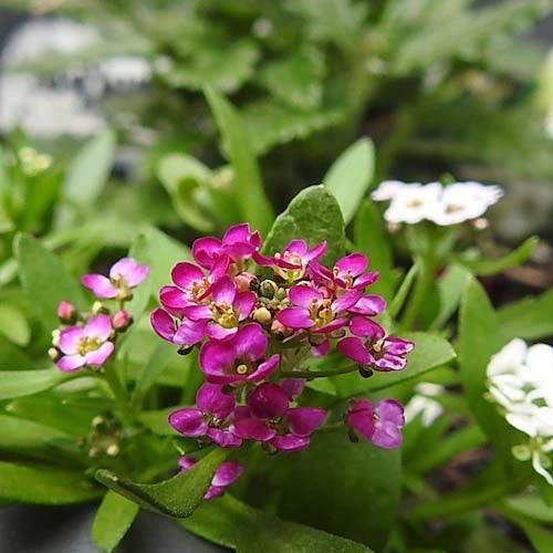 Alyssum is a low growing annual that is known for its carpet of sweet smelling Rose colored flowers. It grows and flowers best during the coolest parts of the summer in New England, but in northern and coastal areas can be in flower all summer long.