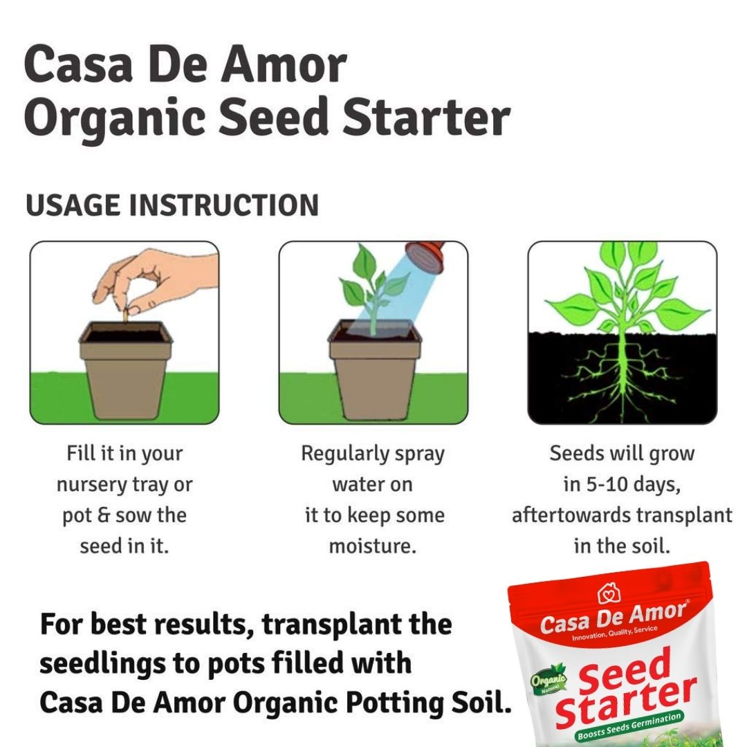 Fill Casa De Amor Seed Starter in your nursery tray or pot & sow the seed in it. Regularly spray water on it to keep some moisture. Seeds will grow in 5-10 days, afterward transplanted into the soil.